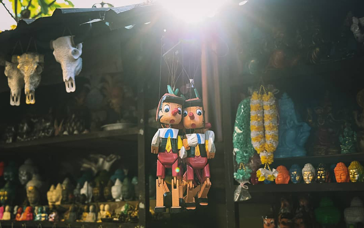 Kebetulan, matahari pagi itu hangat sekali. Ia bersemburat dari sela-sela atap lapak-lapak penjual. Berjalan kaki dengan tenang di gang-gang kecil pasar ini salah satu kegiatan favoritku jika ke Ubud. Tak hanya bisa melihat para seniman melukis langsung di atas kanvas putih, mendengarkan penjual alat musik memainkan beberapa instrumen untuk menyegarkan hari, hingga bercanda sembari tawar-menawar harga dengan para penjual. Hari itu, bahkan aku punya kawan baru; ibu Suweni, salah seorang ibu pedagang yang mengajakku mampir ke rumahnya tepat di belakang lapak.