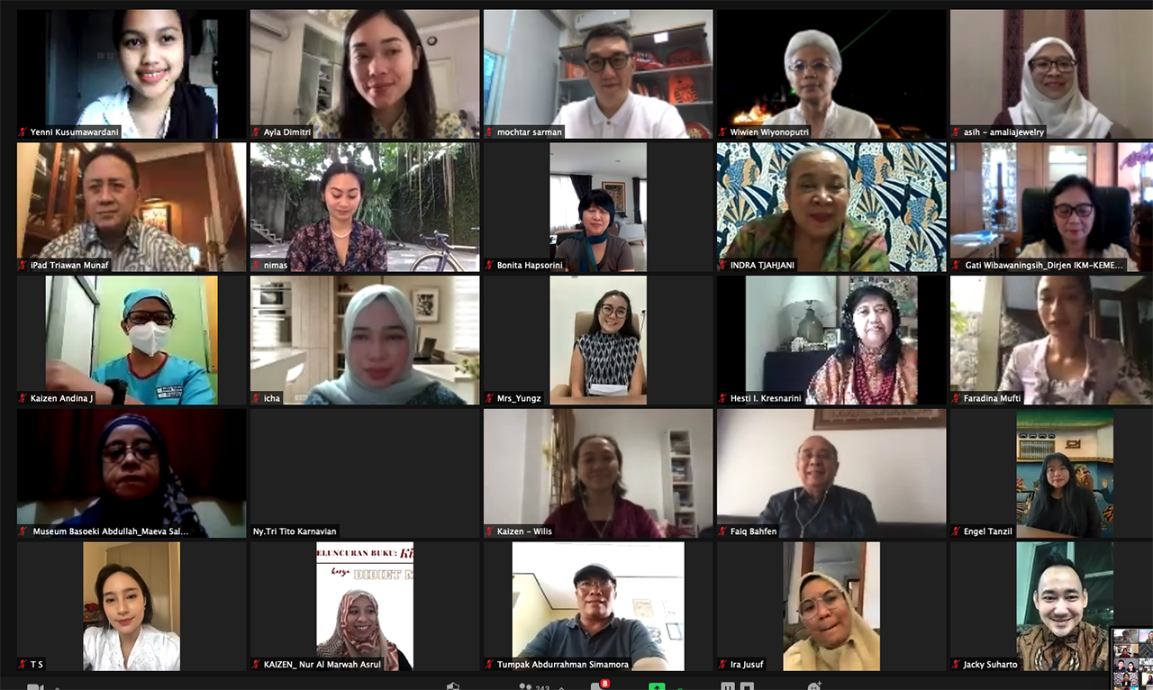 Akhir kata, saya merasa bahagia karena acara peluncuran buku virtual berjalan lancar. Terima kasih atas dukungan kerabat, teman-teman, rekan pers, dan komunitas. Semoga buku ini bisa menjadi satu wahana yang tidak hanya menarik untuk dibaca, tetapi ia akan hidup dan menghidupi yang lain. Tidak hanya dalam bentuk ilmu, tetapi juga menghidupi yang lain dalam bentuk ekonomi yang nyata—pembuat kebaya, pembatik, pembuat tenun, pembuat kain songket, wastra Indonesia lain, juga perajin aksesori, perajin tas, sampai perajin sepatu.